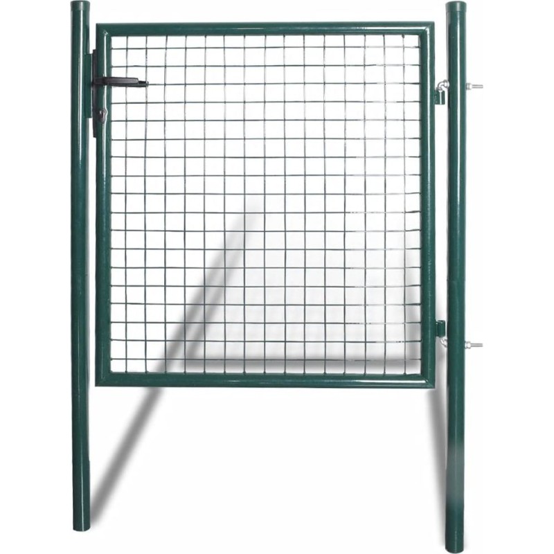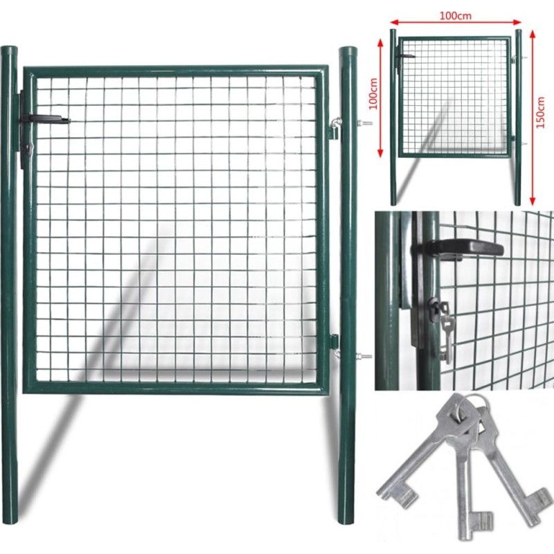 Brama wykonana z wytrzymałej stali ma solidną konstrukcję i została pomalowana proszkowo by zabezpieczyć ją przed na rdzą i korozją. Bramka ma dwa solidne słupki z mocnymi zawiasami dla łatwego montażu, a do zestawu dołączony jest również wytrzymały system zamykania z trzema pasującymi kluczami.