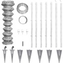 Wszystkie niezbędne akcesoria montażowe są zawarte w opakowaniu! Dostawa zawiera 1 galwanizowane ogrodzenie, 5 galwanizowanych słupków ogrodzeniowych, 5 galwanizowanych kołków kotwiących do słupów ogrodzeniowych, 2 galwanizowane słupki ukośne, 2 galwanizowane kołki kotwiące do słupków ukośnych, 1 górny drut, 1 drut do wiązania i 3 napinacze drutu.