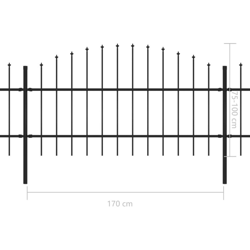 vidaXL Panele ogrodzeniowe z grotami, stal, (0,75-1) x 5,1 m, czarne