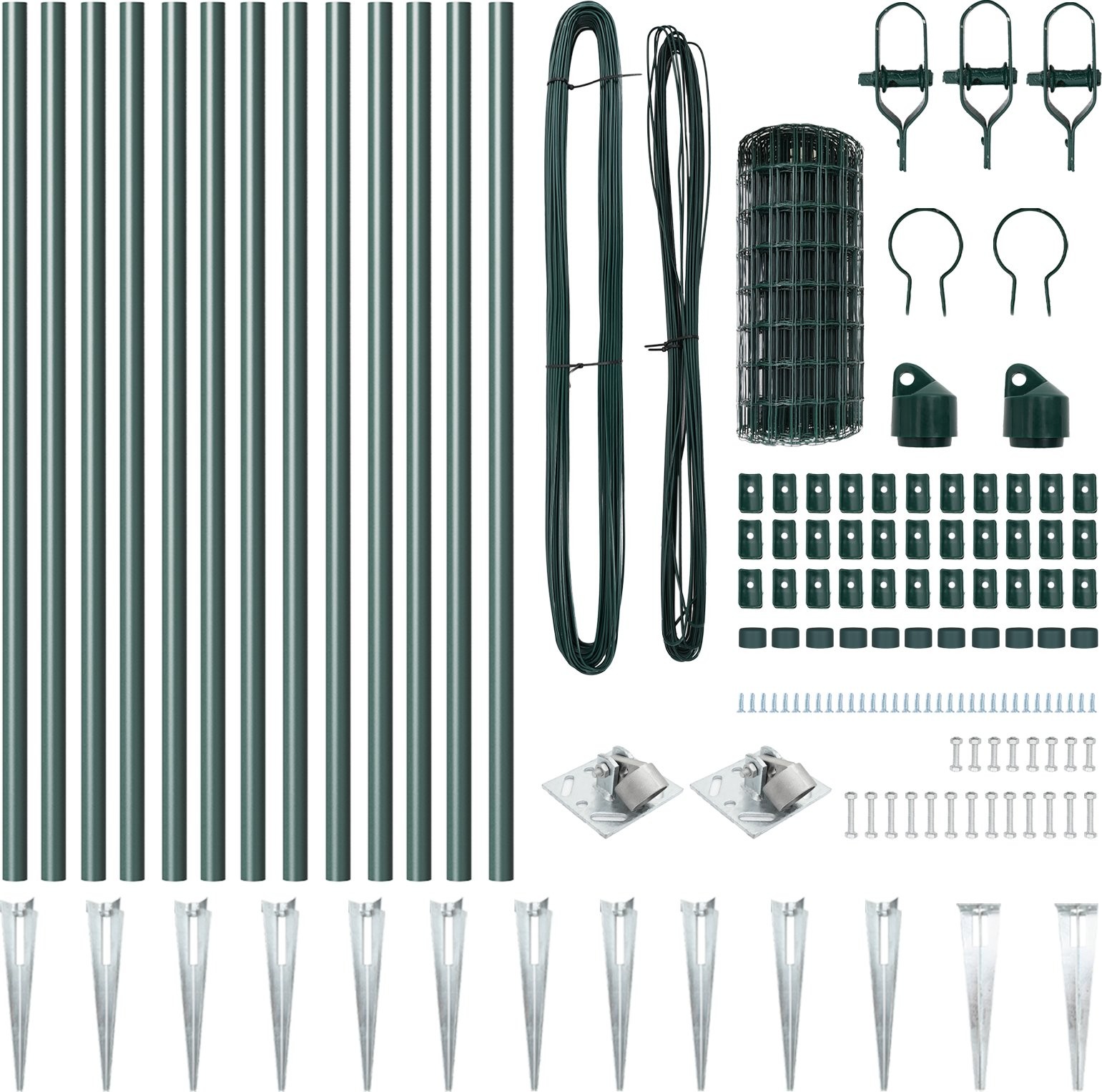 vidaXL Ogrodzenie Euro z 13 Kolcami 0,6x25 m Stal Galwanizowana Zielona