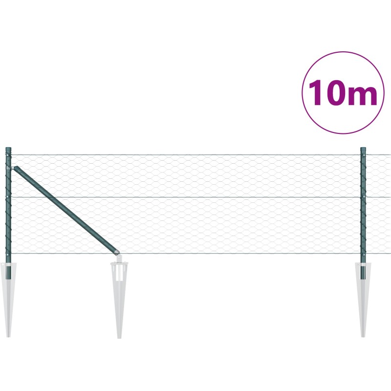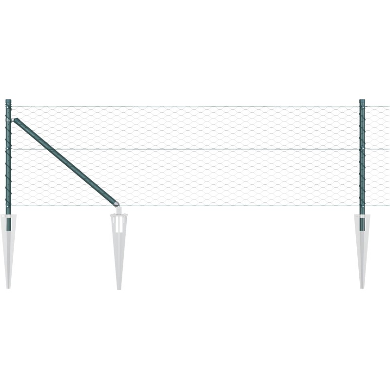Ogrodzenie heksagonalne vidaXL Zielone 0,8x25 m Stalowe, Słupki ogrodzeniowe vidaXL z kolcem 13 szt. 32 mm 100 cm Stal ocynkowan
