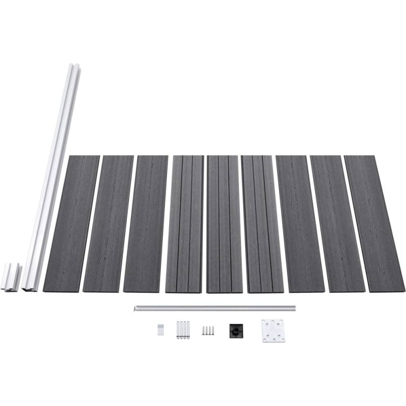 Wykonane z WPC (kompozytu drewna i plastiku) ogrodzenie jest trwałe i odporne na butwienie czy rdzewienie. Ma ono nadruk słojów drewna na jednej stronie oraz standardowy nadruk na drugiej stronie, możesz więc wybrać, który wzór wolisz. Dzięki aluminiowemu profilowi górnemu deski ogrodzenia można ściśle ze sobą połączyć, co zwiększa ich sztywność i odporność na uderzenia.
