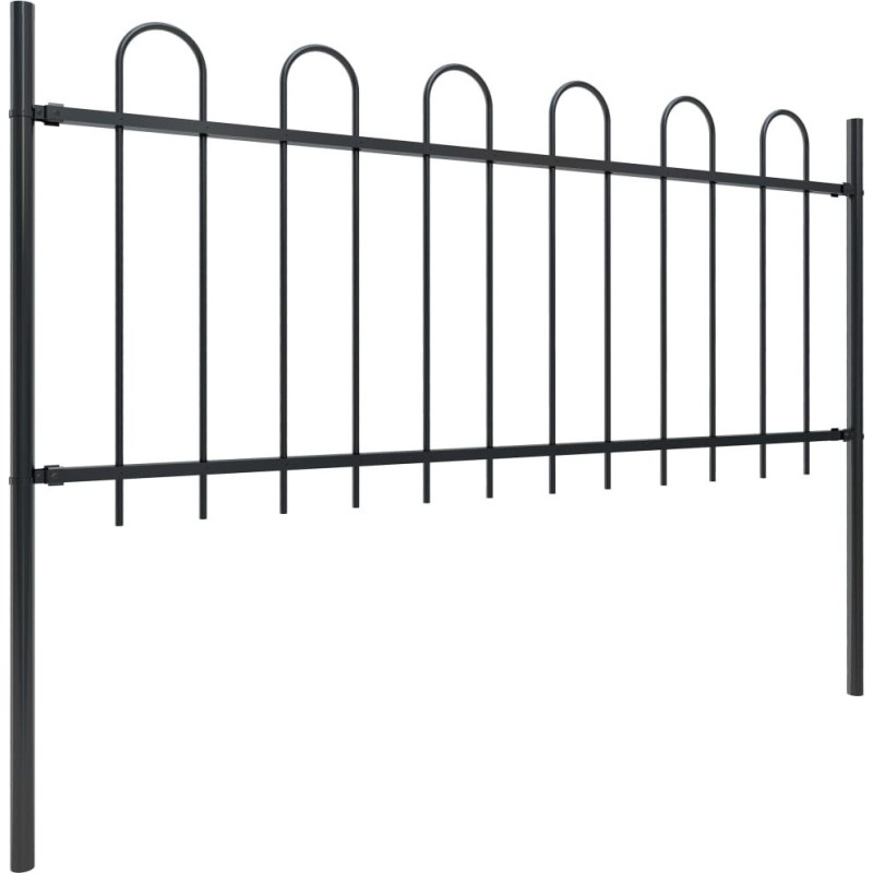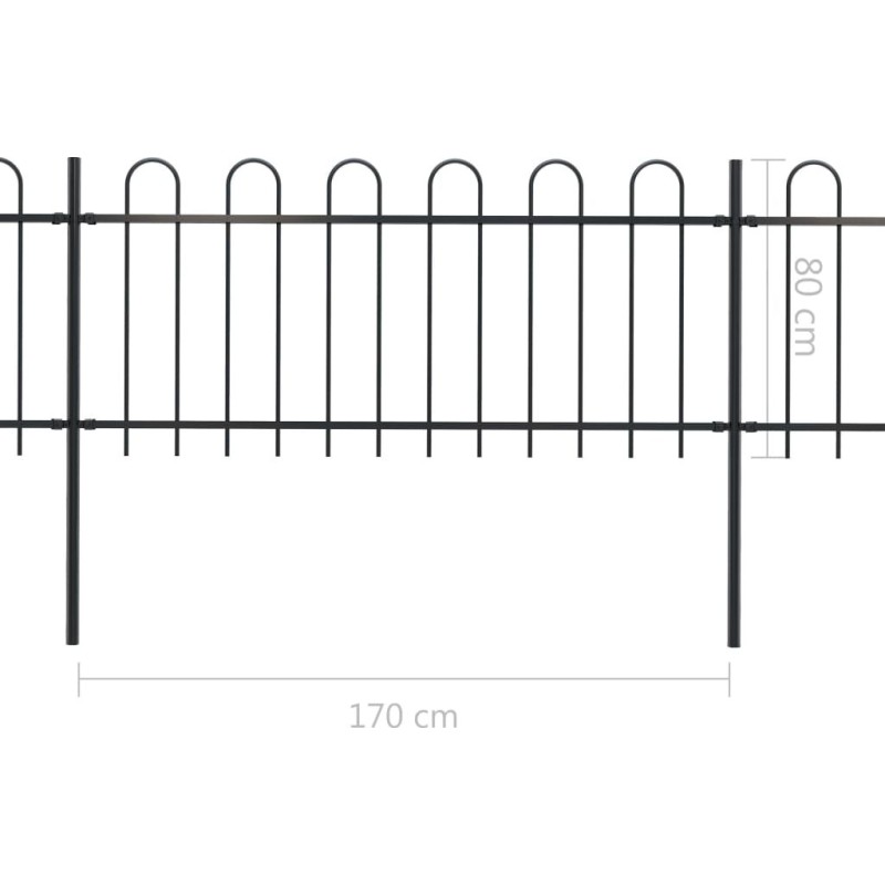 vidaXL Ogrodzenie z zaokrąglonymi końcami, stalowe, 5,1x0,8 m, czarne