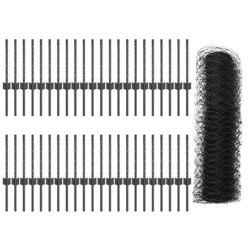Słupki ogrodzeniowe vidaXL 11 sztuk U-Channel Szary 40 cm Stal, Sześciokątne ogrodzenie vidaXL Szare 0,4x100 m Stal