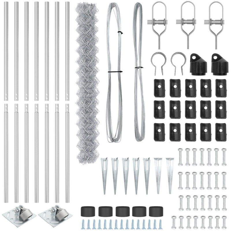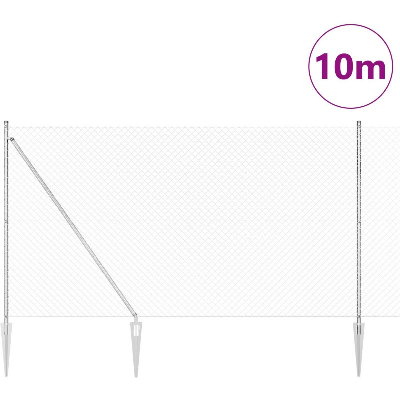 vidaXL Siatka Ogrodzeniowa z 7 Słupkami Kotwicznymi 1.6x10 m Stal Ocynkowana