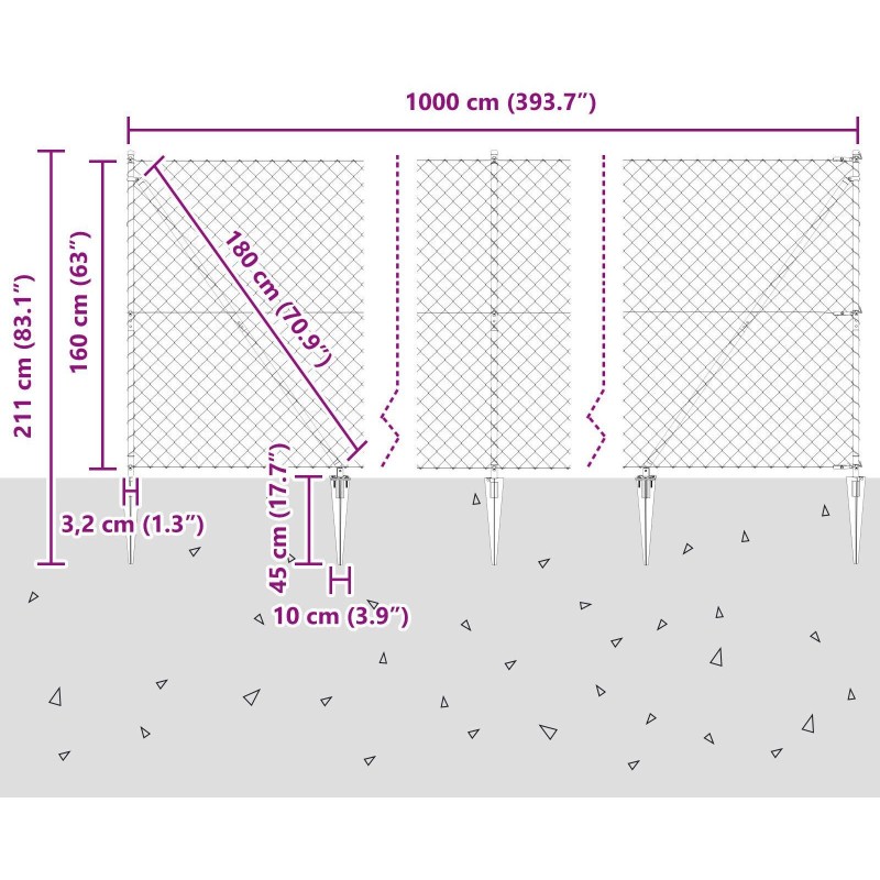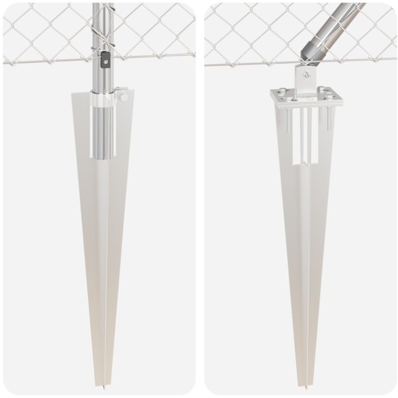 Produkt wyposażony jest w 7 słupków kotwiczących, które zapewniają stabilność i bezpieczeństwo ogrodzenia. Dzięki nim, siatka jest odporna na działanie wiatru oraz nacisku, co czyni ją idealnym rozwiązaniem do użytku na zewnątrz.