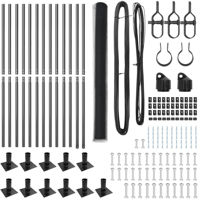 Zestaw został zaprojektowany z myślą o prostocie montażu. W skład zestawu wchodzą wszystkie niezbędne elementy, w tym słupki, rolki siatki oraz akcesoria, co umożliwia szybkie i łatwe ustawienie ogrodzenia. Do montażu wystarczą tylko dwie osoby oraz podstawowe narzędzia, takie jak wiertarka, miara, młotek i śrubokręt.