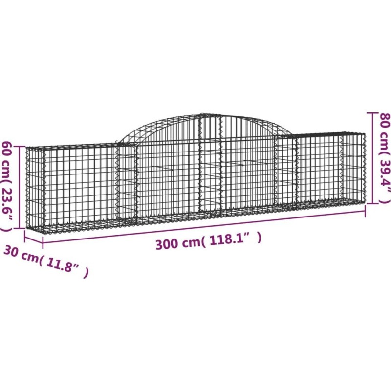 vidaXL Kosze gabionowe, 2 szt., 300x30x60/80 cm, galwanizowane żelazo