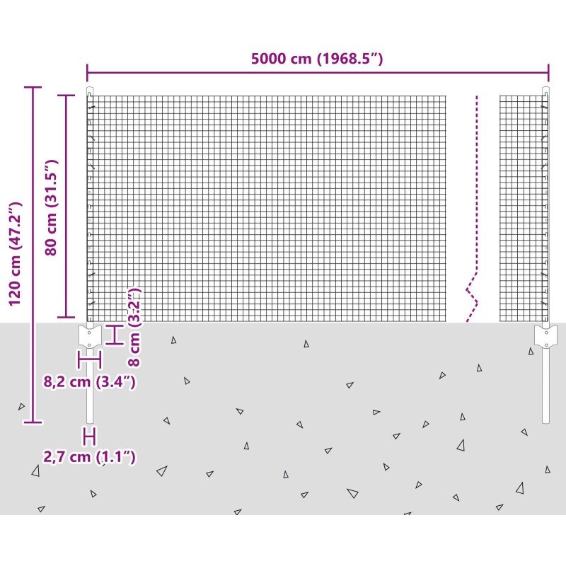 vidaXL Ogrodzenie z drutu spawanego z 22 słupkami U Szary 0.8x50 m Stal