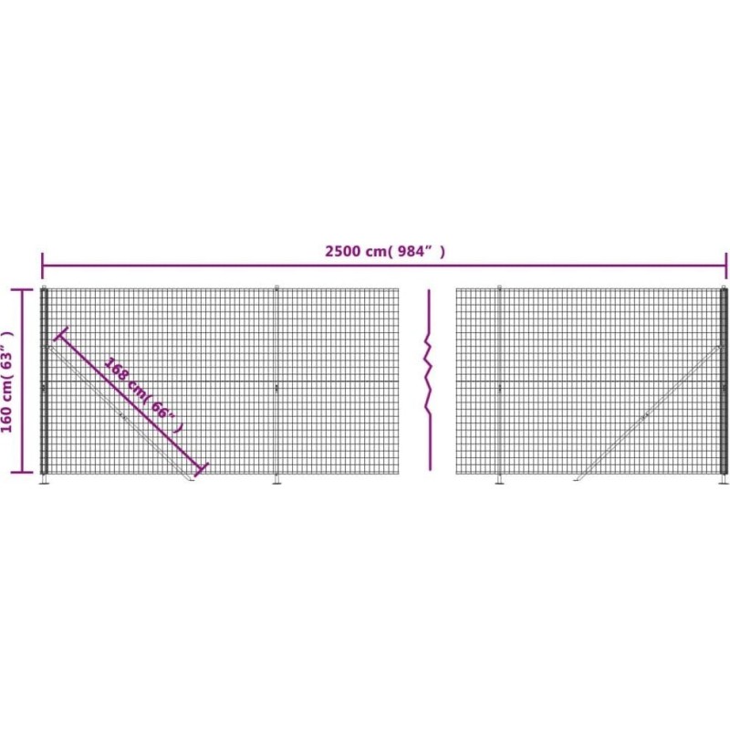 vidaXL Ogrodzenie z siatki, ze stopami słupków, antracytowe, 1,6x25 m