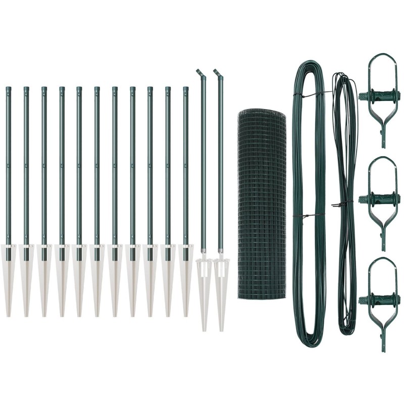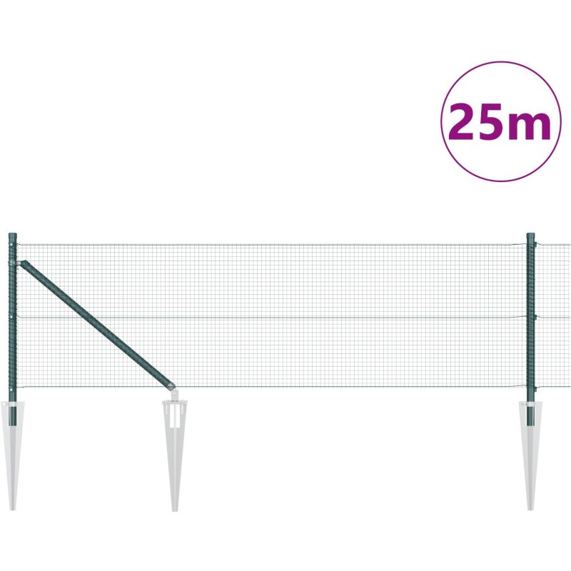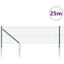 vidaXL Ogrodzenie z drutu spawanego z 13 kołkami Zielone 0.6x25 m Stal