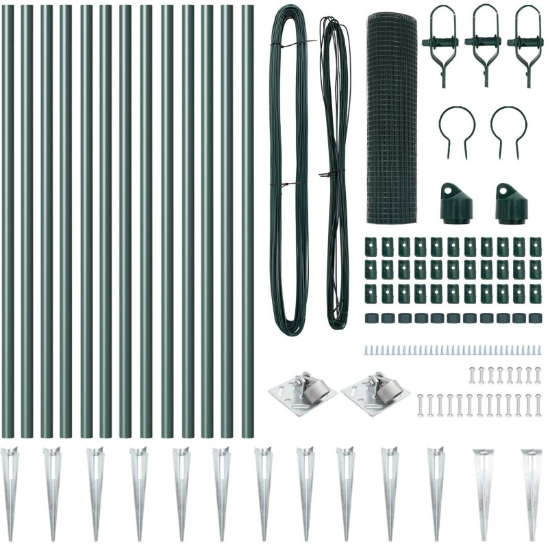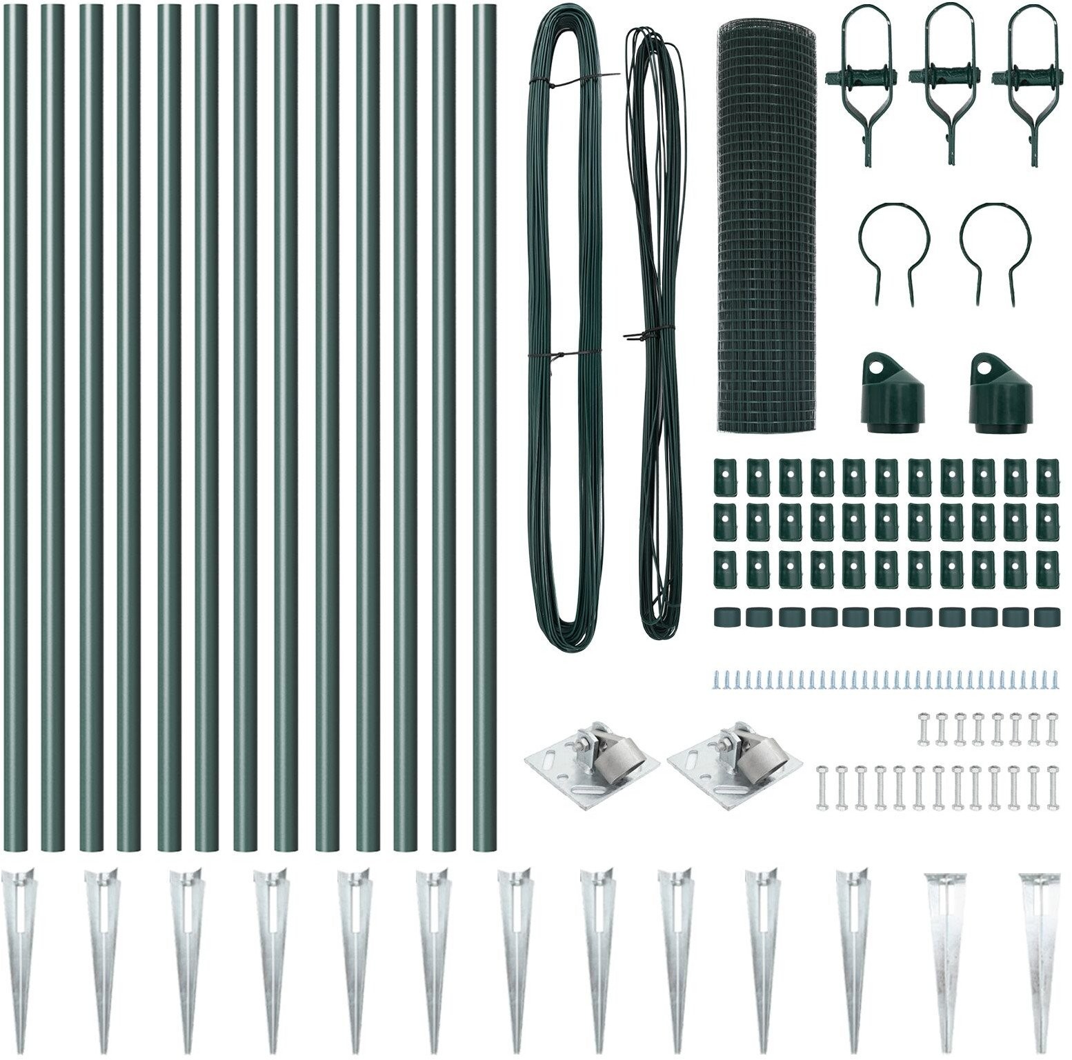 vidaXL Ogrodzenie spawane z 13 słupami zbitymi Zielone 0.6x25 m Stal