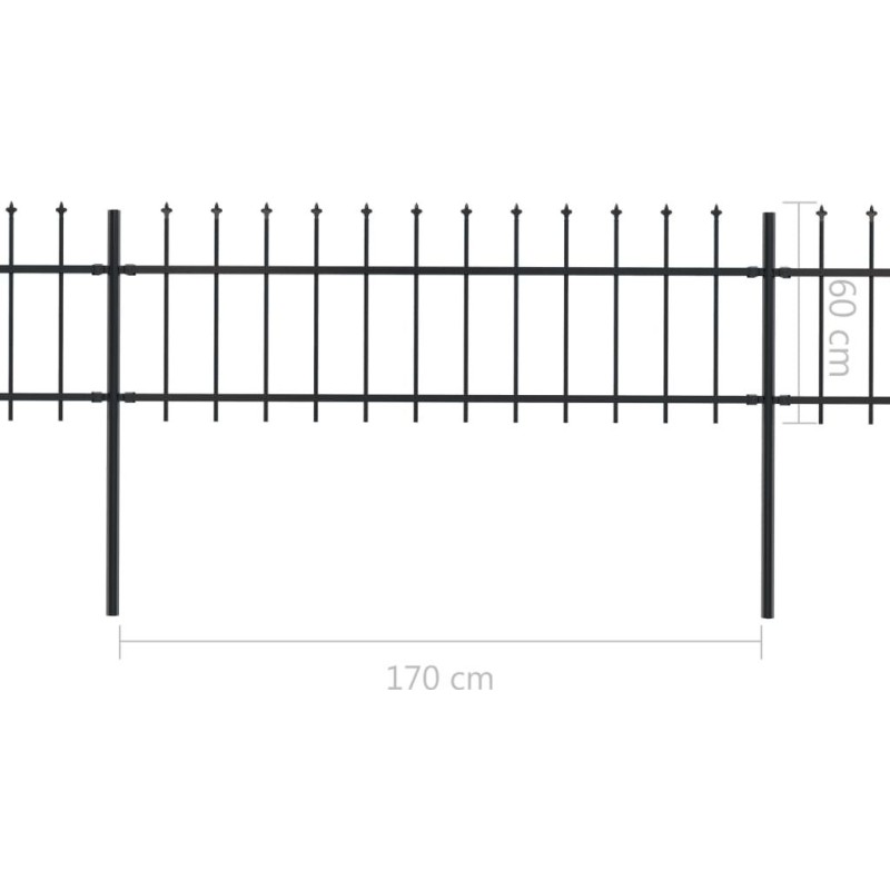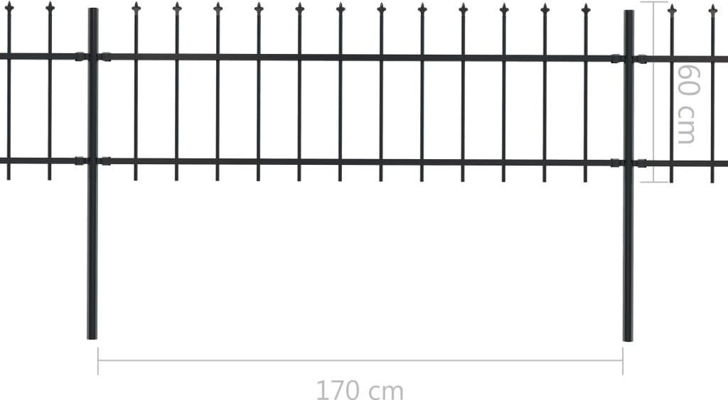 vidaXL Ogrodzenie z prętów z grotami, stalowe, 5,1 x 0,6 m, czarne