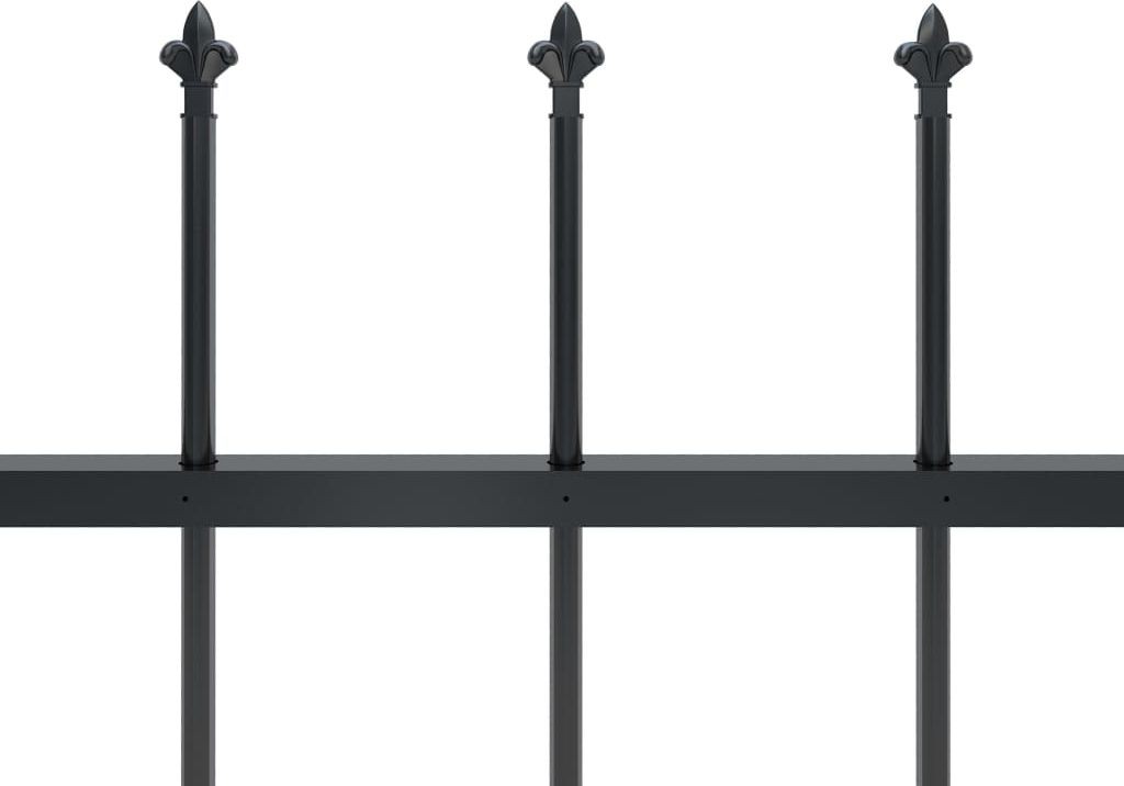 Stwórz eleganckie ogrodzenie wokół swojego ogrodu lub domu! To ozdobne, stalowe ogrodzenie, składające się z 3 paneli i 4 słupków ma długość całkowitą 5,1 m. Utworzy mocną, bezpieczną i niewymagającą konserwacji granicę Twojego ogrodu, siedliska lub terenu komercyjnego.
