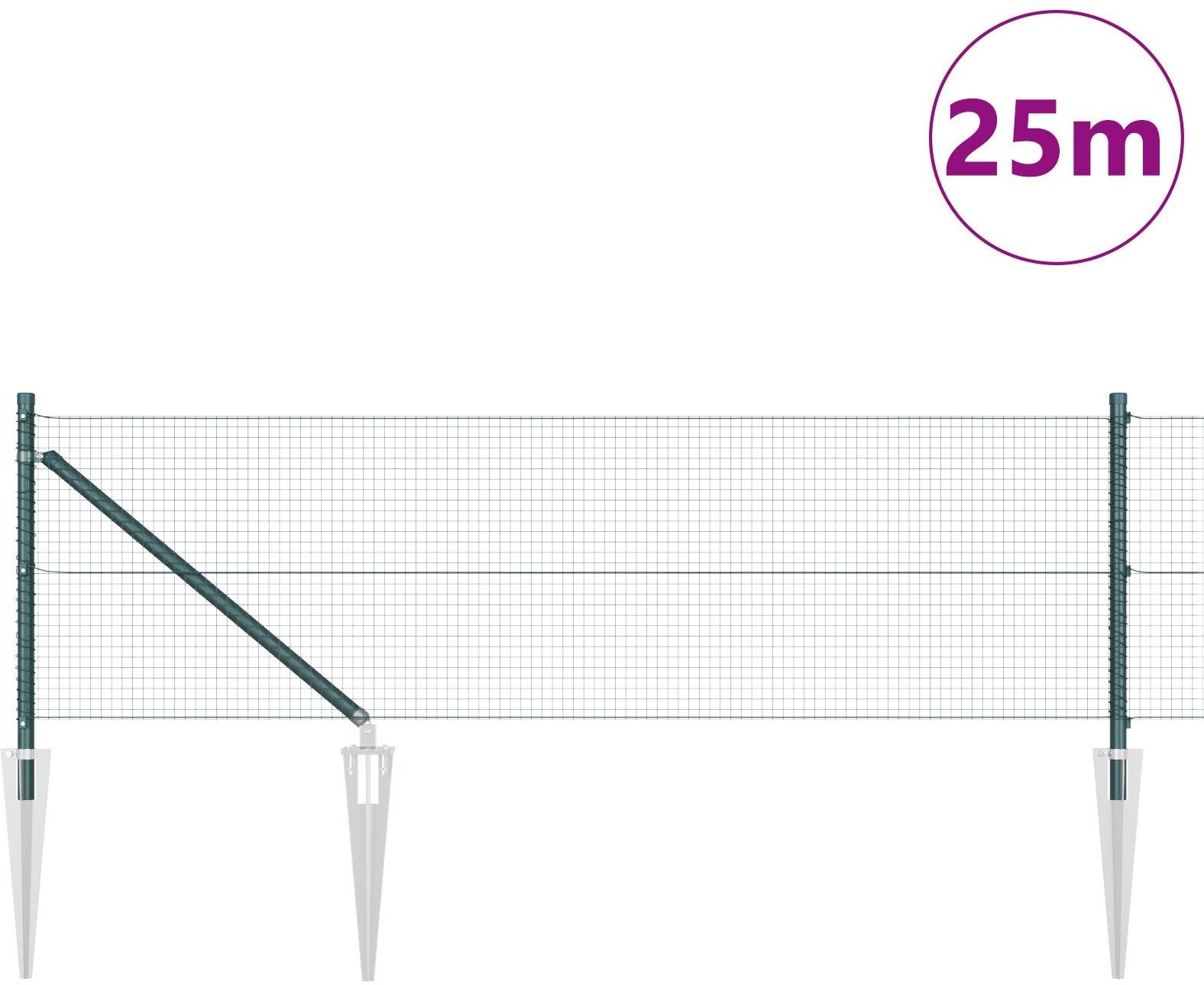 vidaXL Ogrodzenie spawane z 13 słupkami w kształcie kolca Zielone 0,6x25 m Stal