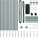 - Kompletny pakiet: W zestawie 12 paneli ogrodzeniowych, 2 kotwy mocujące, rolka siatki i ties, co sprawia, że jego instalacja oraz zabezpieczenie terenu są szybkie i proste.