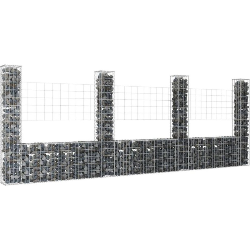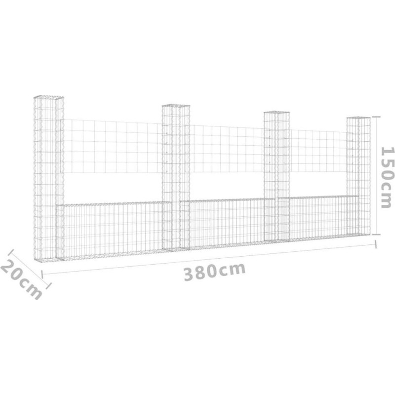vidaXL 4 słupki gabionowe U-kształtne, 380x20x150 cm, żelazne