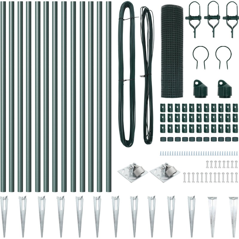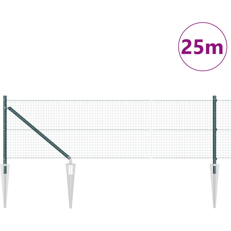 vidaXL Ogrodzenie z drutu spawanego z 13 wbijanymi słupkami Zielone 0.6x25 m Stal