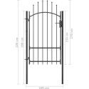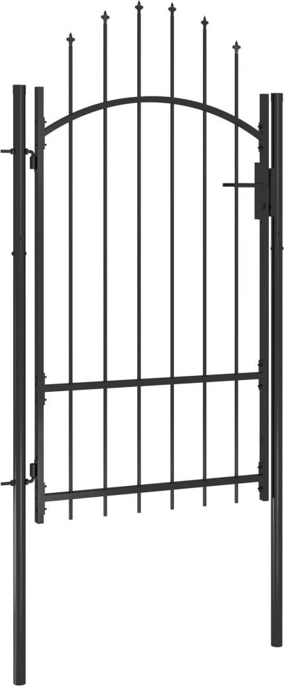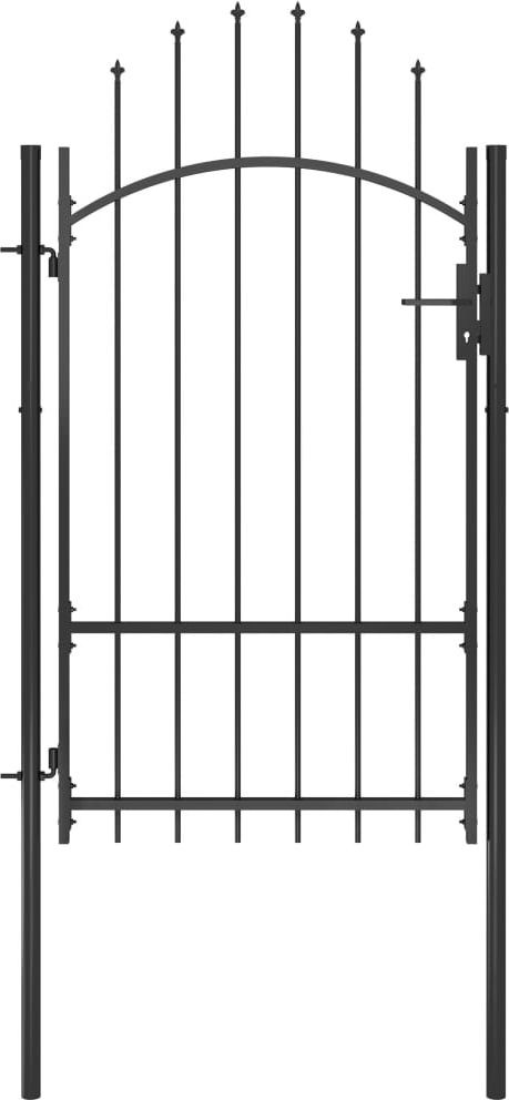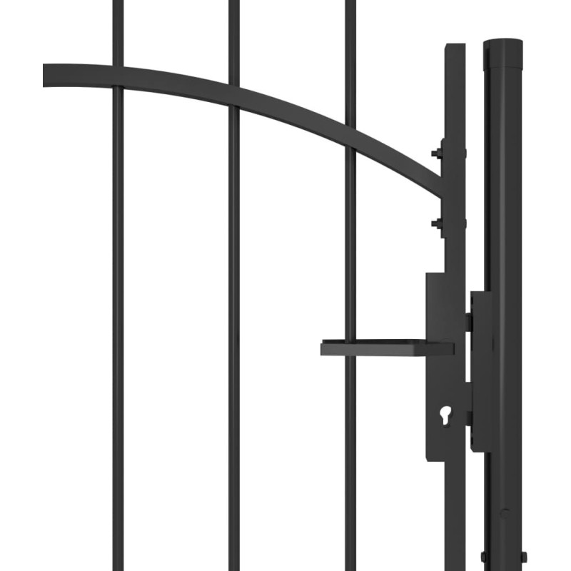 Dzięki eleganckiej konstrukcji w kształcie łuku, a także mocnym, poziomym prętom wzmacniającym ramę, nasza furtka zapewni wysoki stopień bezpieczeństwa, tworząc wspaniałe wejście na Twoją posesję. Wykonana z mocnej stali i malowana proszkowo brama jest odporna na rdzę i korozję. Wyposażono ją w zamek i jest dostarczana z 2 słupkami z zawiasami, co ułatwia jej montaż.