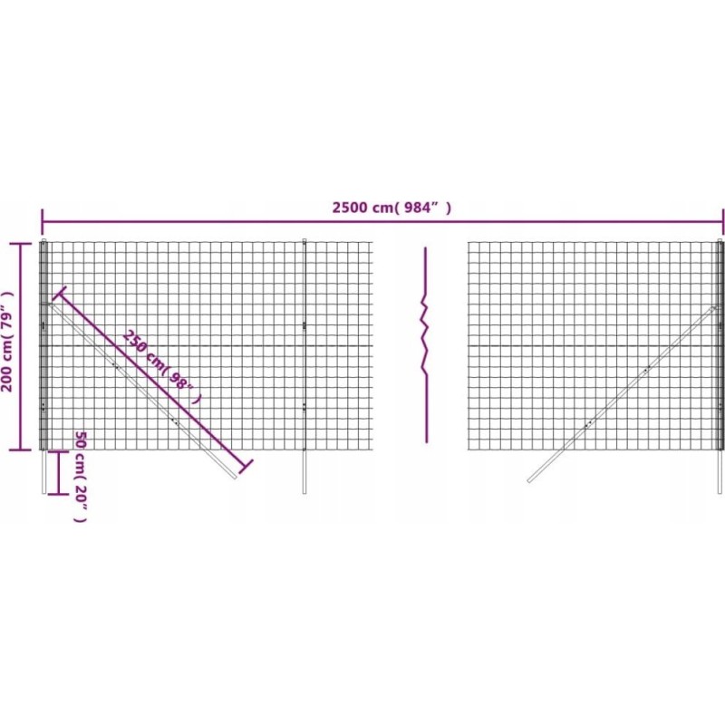 vidaXL Ogrodzenie z siatki drucianej, antracytowe, 2x25 m