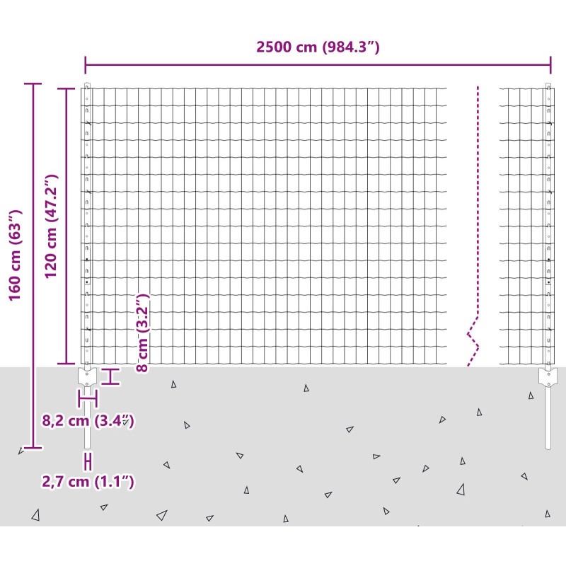 Szare ogrodzenie euro Zestaw 2 Szary Metal 25 x 1,2 m Trwałe
