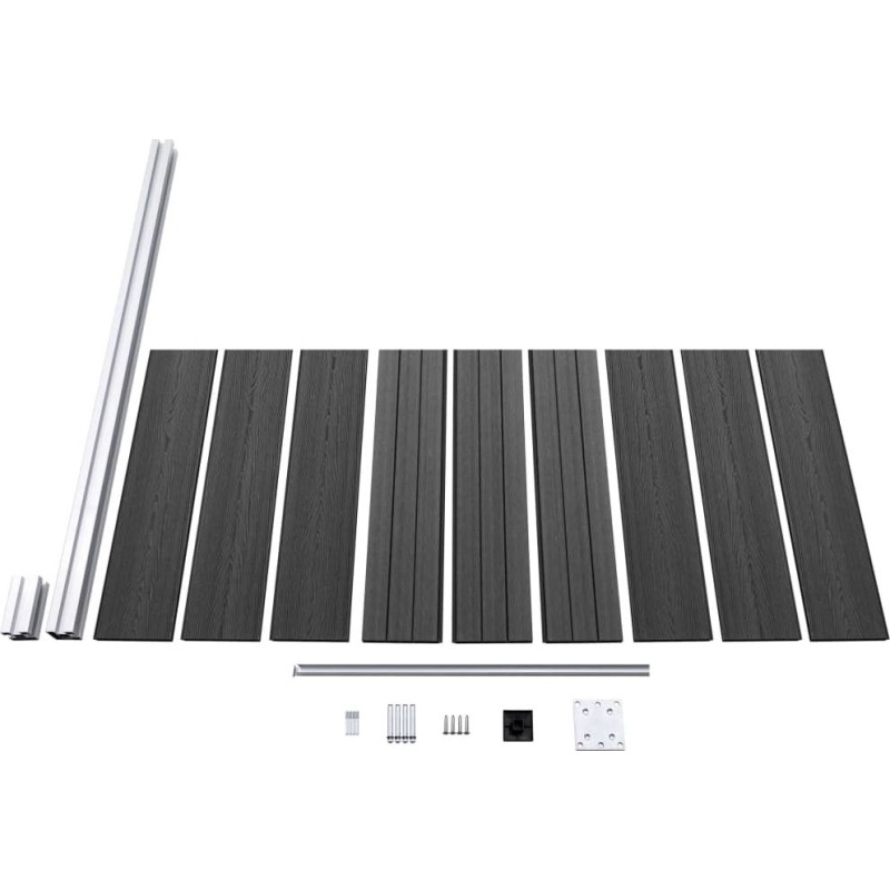 - Materiał: WPC (kompozyt drewna i plastiku), aluminium, stal