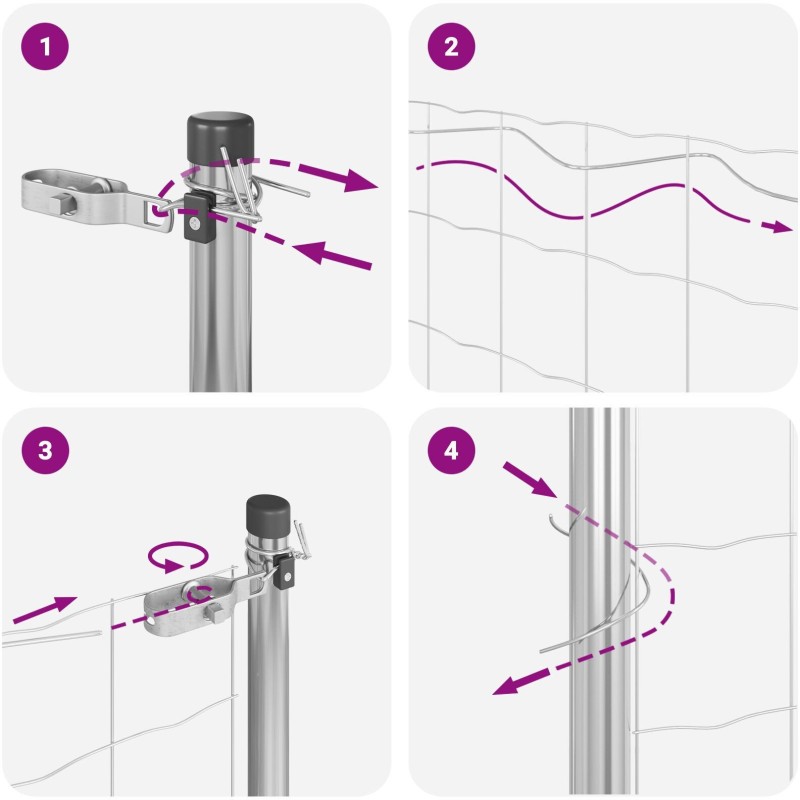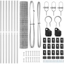 W zestawie znajduje się wszystko, co potrzebne do szybkiego i łatwego montażu: siatka ogrodzeniowa, 7 słupków, druty oraz elementy do montażu. Wymagana jest tylko jedna osoba do instalacji, a dołączona instrukcja sprawia, że cały proces jest prosty i bezproblemowy.