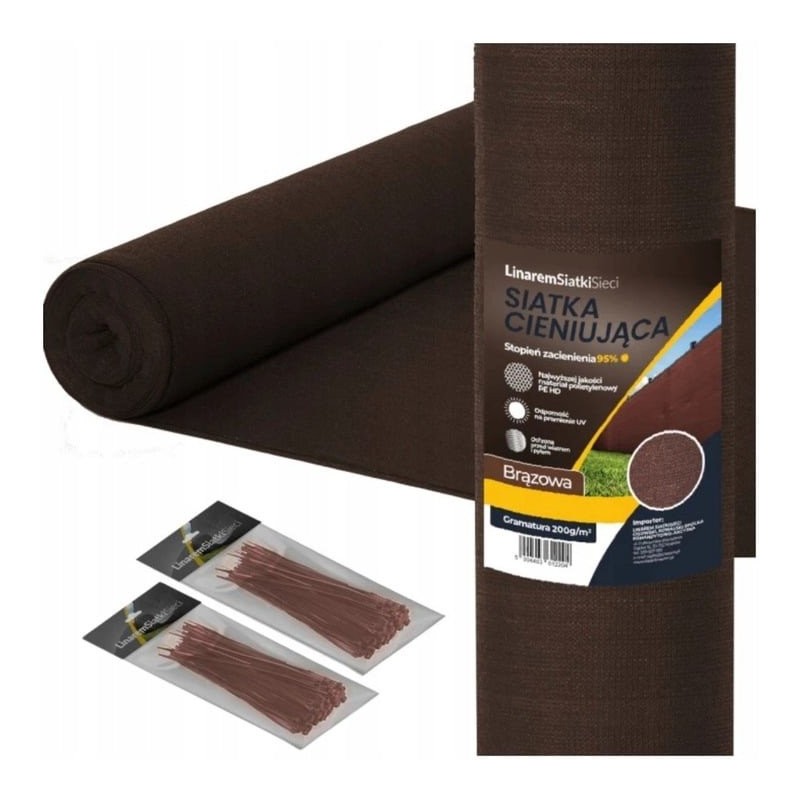 SIATKA CIENIUJĄCA 95% MATA 2x50m MASKUJĄCA NA OGRODZENIE PŁOT 200g +UV BRĄZOWA