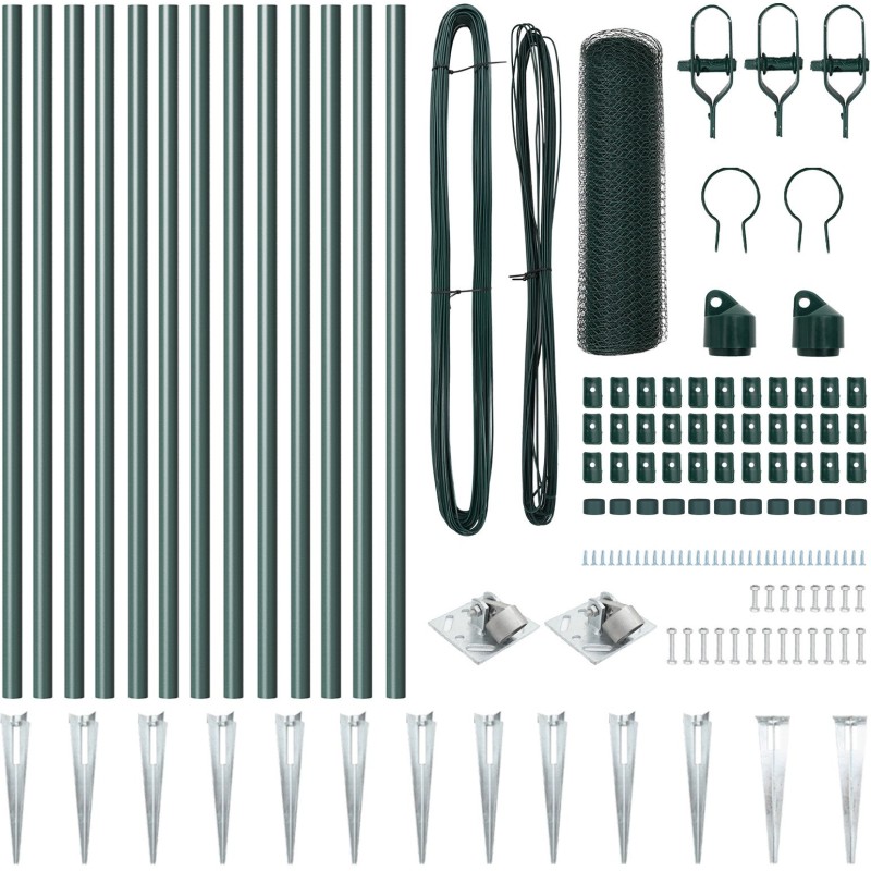 Zestaw ogrodzeniowy vidaXL to znakomity wybór dla każdego, kto pragnie zadbać o bezpieczeństwo swojego ogrodu oraz estetykę przestrzeni zewnętrznej. Składający się z dwóch elementów o długości 25 m i wysokości 0,5 m, ten zestaw, wykonany z metalu i plastiku w kolorze leśnej zieleni, doskonale wkomponowuje się w naturalne otoczenie, tworząc harmonijną całość.