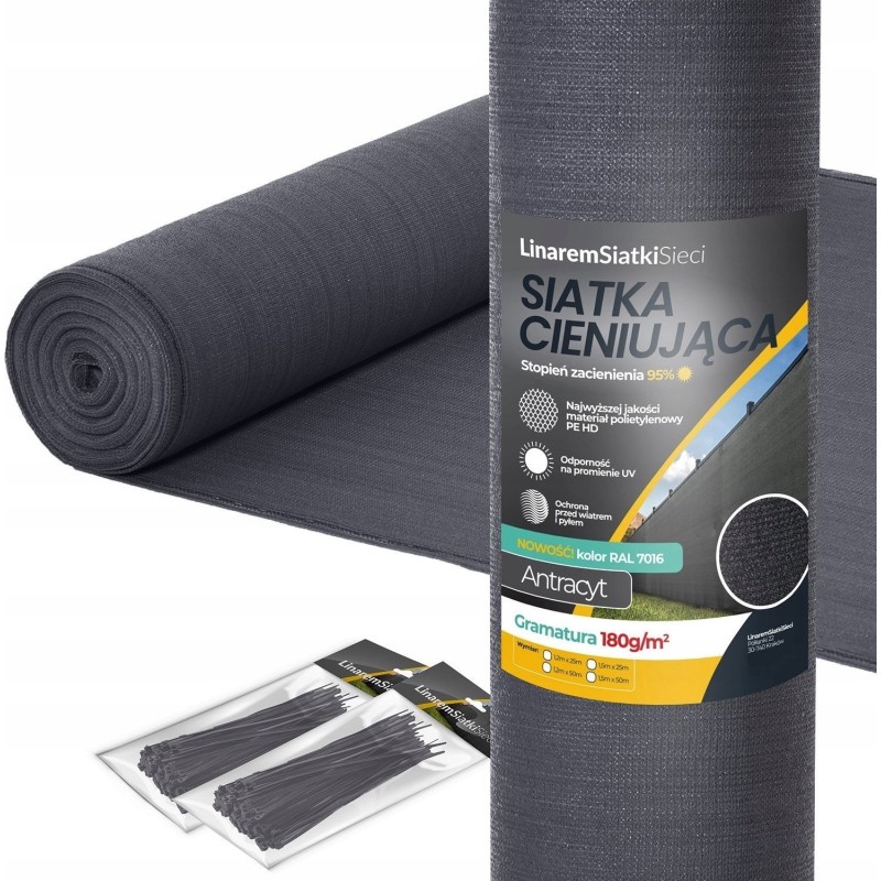 Linarem SiatkiSieci SIATKA CIENIUJĄCA 95% OSŁONA 1,8x50m ANTRACYT MASKUJĄCA NA OGRODZENIE PŁOT