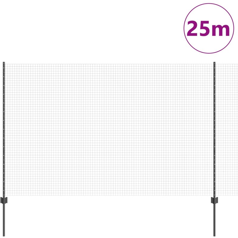 vidaXL Ogrodzenie z drutu spawanego z 22 słupkami szarym 1.6x25 m ze stali