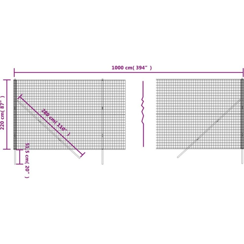 vidaXL Ogrodzenie z siatki drucianej, antracytowe, 2,2x10 m