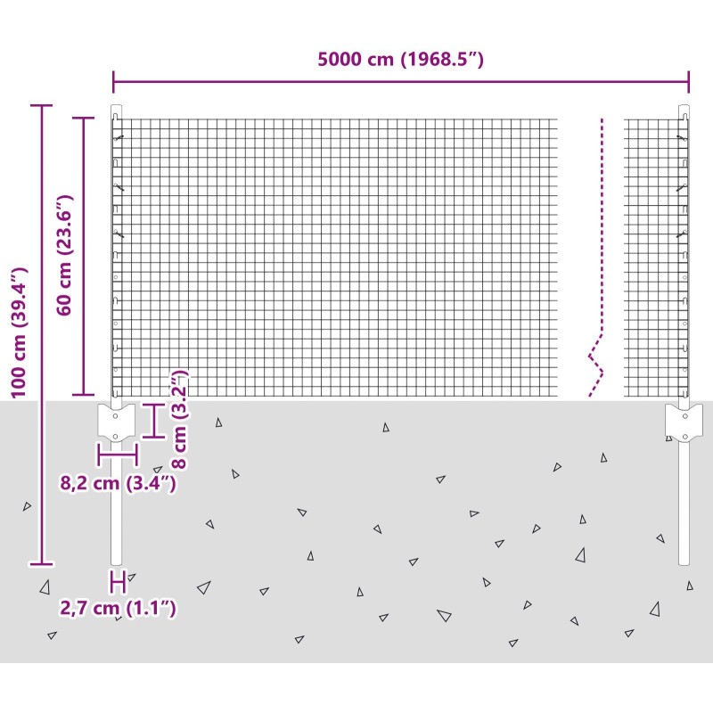 vidaXL Ogrodzenie z drutu spawanego z 22 słupkami U Srebrne 0.6x50 m Stal – Idealne rozwiązanie dla Twojego ogrodu
