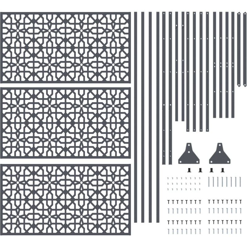 Ten panel ogrodowy to sprytny sposób na poprawę wystroju przestrzeni na zewnątrz, zapewniając jednocześnie praktyczną granicę. Jego nowoczesny design, z gładkimi powierzchniami i atrakcyjnym wzorem siatki kwiatowej, idealnie wpasuje się w modną atmosferę na balkonach i w ogrodach.