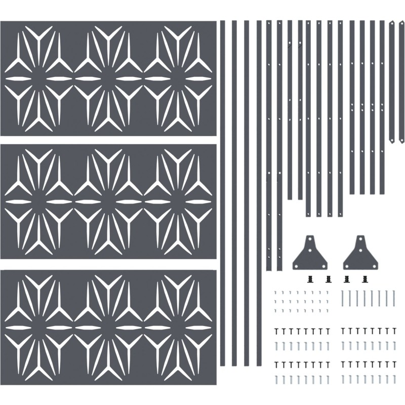 Ten metalowy panel ogrodzeniowy to elegancki sposób na wzbogacenie swojej przestrzeni na zewnątrz, a przy tym zapewnia funkcjonalną barierę. Ma nowoczesny wygląd z gładkimi powierzchniami i wzorem płatków, idealny do stworzenia stylowego klimatu w ogrodach i przestrzeniach na zewnątrz.