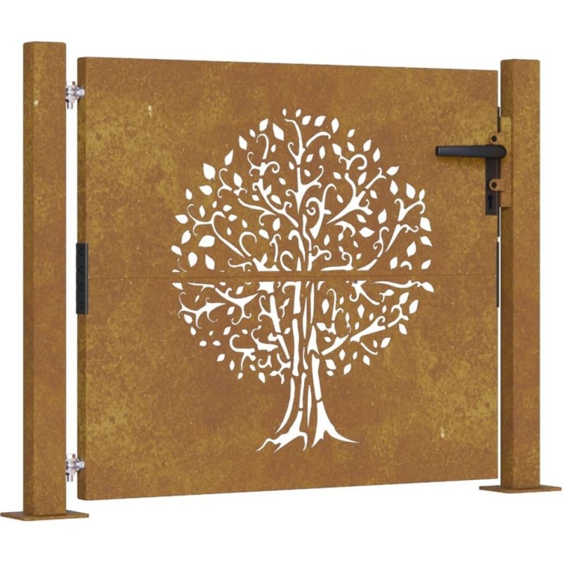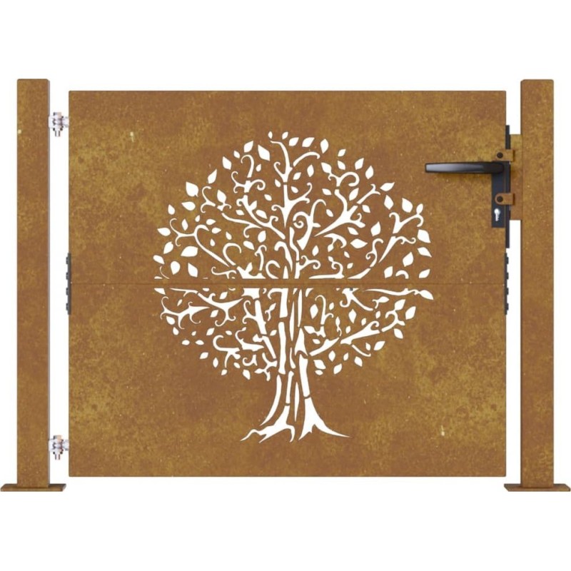 vidaXL vidaXL Furtka ogrodowa, 105x80 cm, stal kortenowska, motyw drzewa