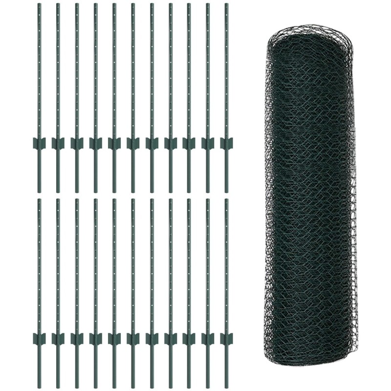 Słupki ogrodzeniowe vidaXL 11 sztuk U-Channel Zielony 80 cm Stal, Ogrodzenie sześciokątne vidaXL Zielone 0.8 x 50 m Stal