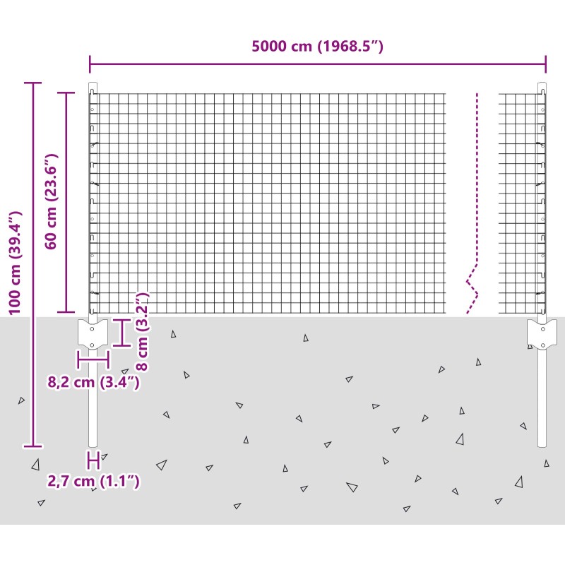 vidaXL Spawane Ogrodzenie z 22 Słupkami Szary 0.6x50 m Stal