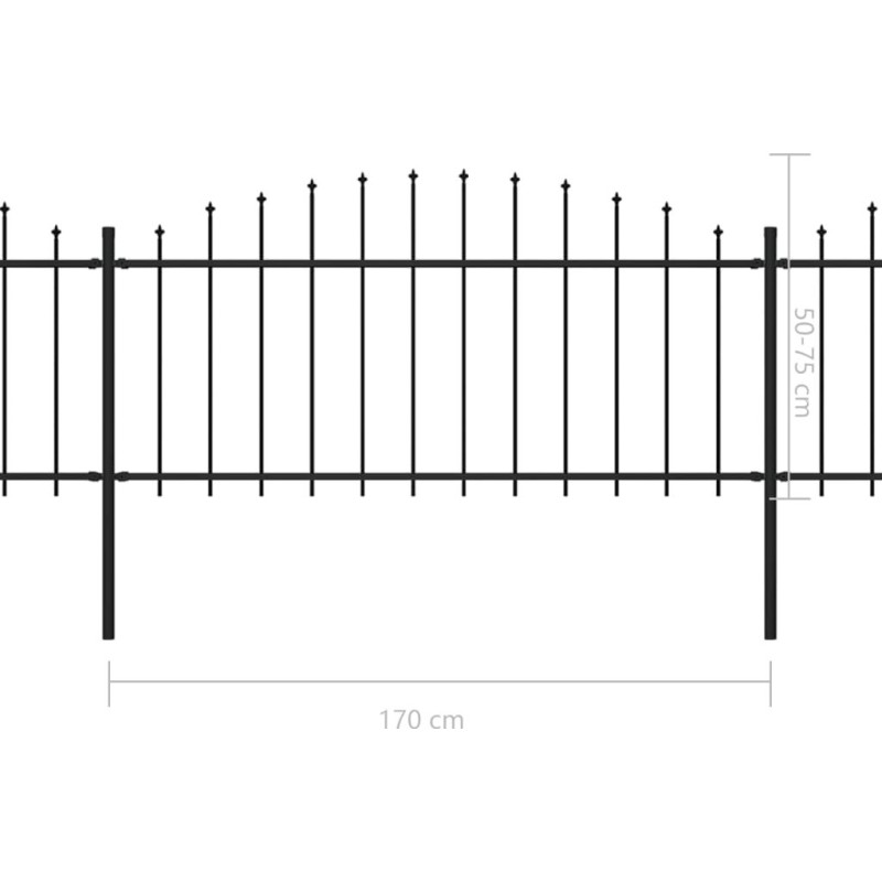vidaXL Panele ogrodzeniowe z grotami, stal, (0,5-0,75) x 5,1 m, czarne