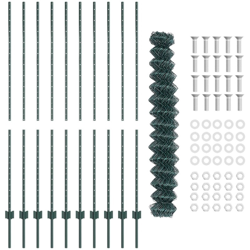 vidaXL Płot z siatki ogrodowej z 10 słupkami zielonym 1,6x10 m stalowym