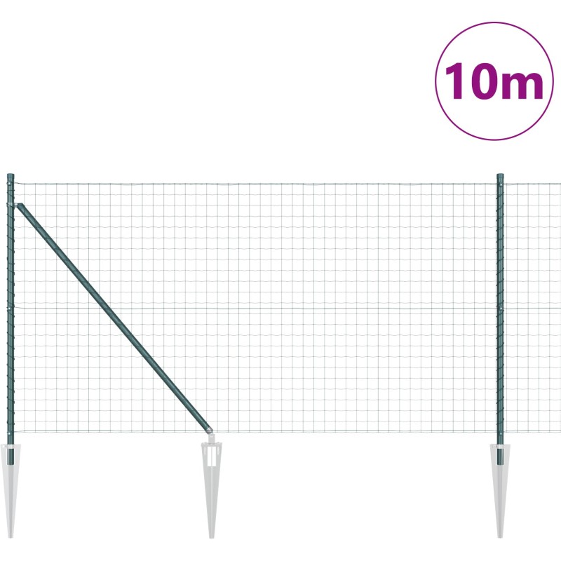 vidaXL Ogrodzenie Euro z 7 szpilkami 1x10 m stal ocynkowana zielona