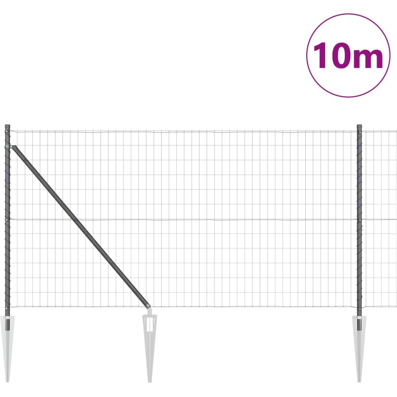 vidaXL Ogrodzenie Euro z 7 słupkami szpikulcami 1x10 m ze stali ocynkowanej szarej
