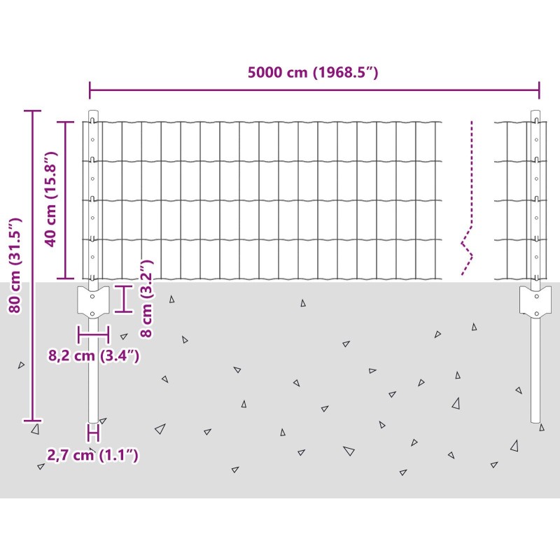 vidaXL Zestaw Ogrodzenia Euro Zestaw 3 Szary Metal 50 x 0.4 m