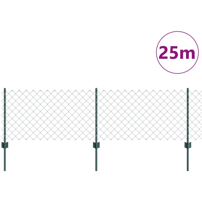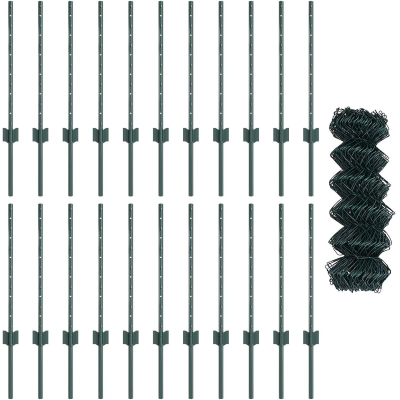 vidaXL Ogrodzenie siatkowe z 22 słupkami U Zielone 0.6x25 m Stal