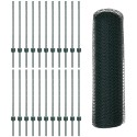 Słupki ogrodzeniowe vidaXL 11 szt. U-Channel Zielony 80 cm Stal, Ogrodzenie heksagonalne vidaXL Zielone 0.8x50 m Stal