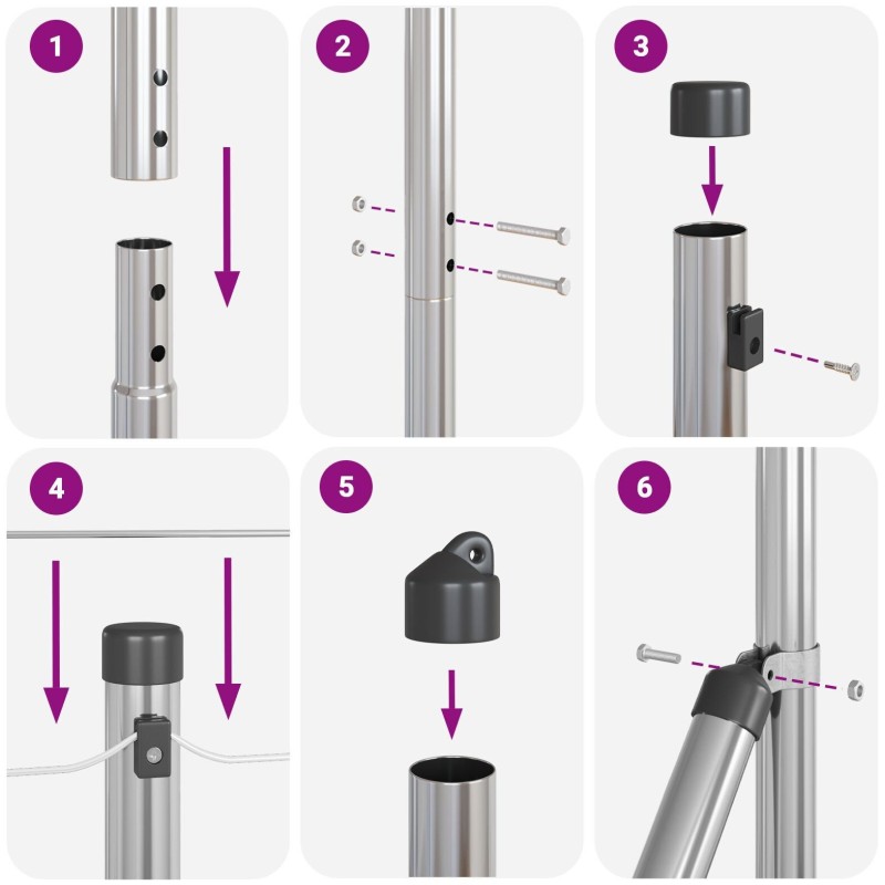 W zestawie znajdują się wszystkie niezbędne elementy do szybkiej i prostej instalacji, w tym panele ogrodzeniowe, napięcie, druty oraz akcesoria montażowe. Instalacja jest łatwa i może być przeprowadzona przez jedną osobę, co oszczędza czas i wysiłek.