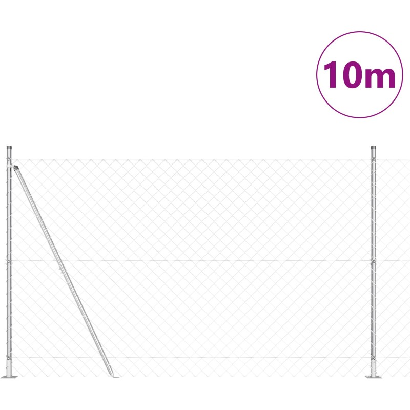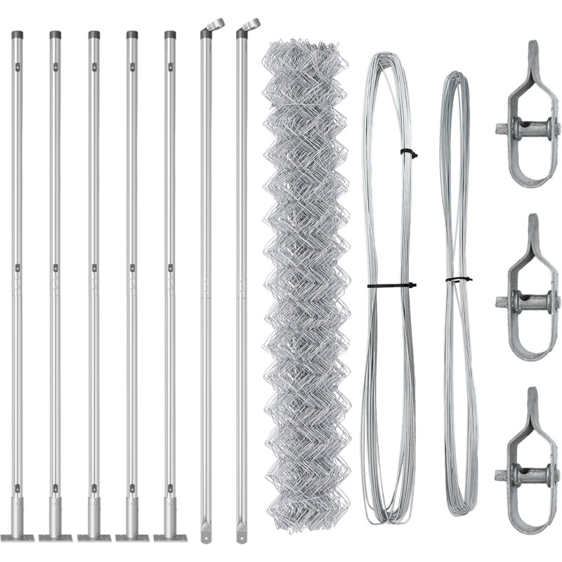 vidaXL Ogrodzenie z ogniw łańcucha z 7 postami flanszowymi 1.6x10 m Stal ocynkowana