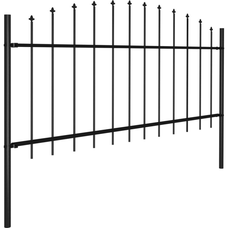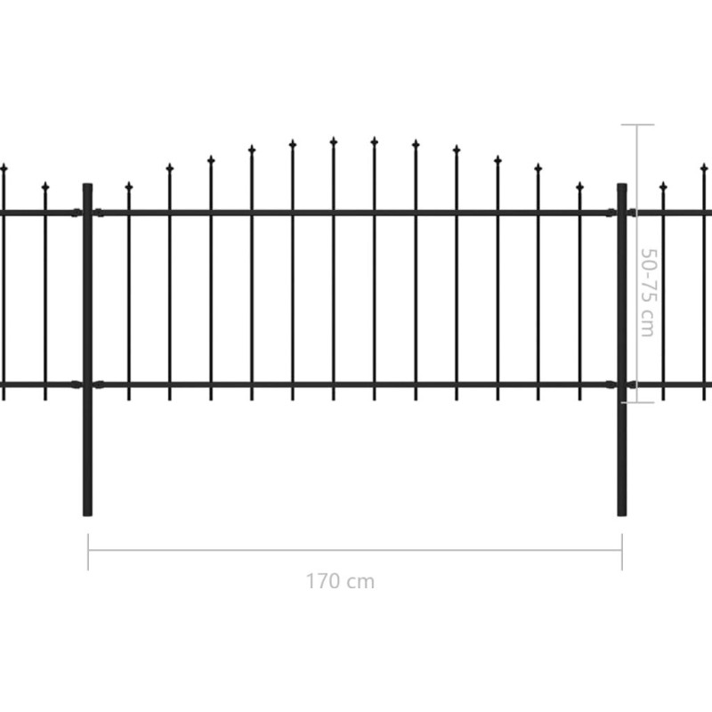 vidaXL Panele ogrodzeniowe z grotami, stal, (0,5-0,75) x 6,8 m, czarne