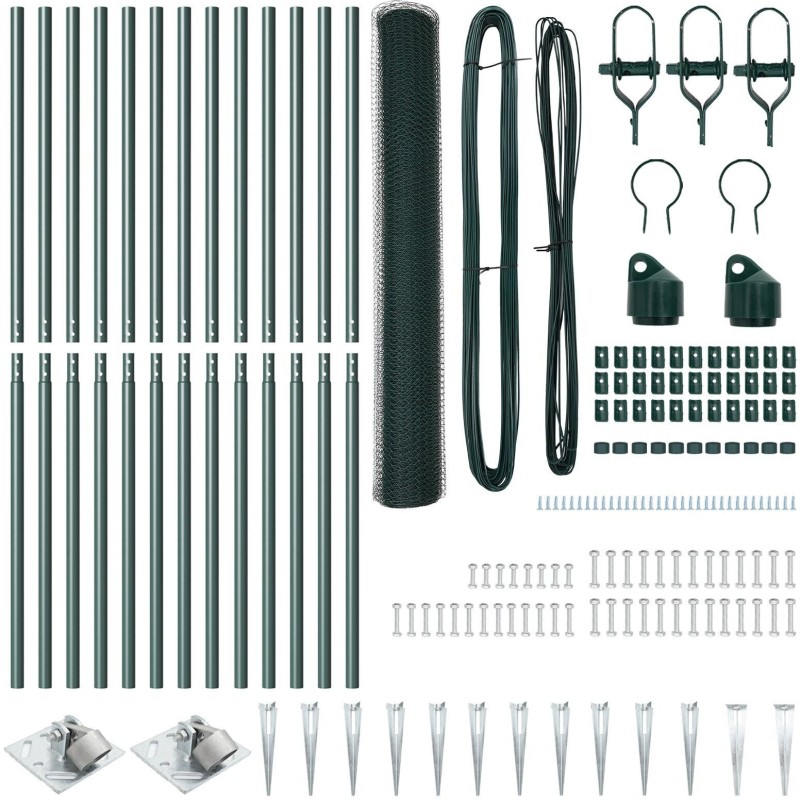 Zestaw ogrodzeniowy vidaXL to znakomite rozwiązanie dla każdego, kto pragnie zabezpieczyć swoją przestrzeń na świeżym powietrzu. Wykonany z trwałego metalu, zestaw składa się z dwóch elementów w eleganckim ciemnozielonym odcieniu, co czyni go doskonałym wyborem do ogrodów oraz innych obszarów na zewnątrz.