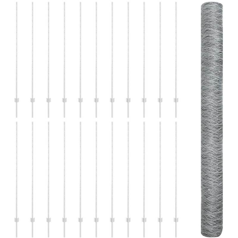 22 sztuki słupków ogrodzeniowych vidaXL U-Channel 160 cm stal ocynkowana, Płot sześciokątny vidaXL 1.6x50 m stal ocynkowana